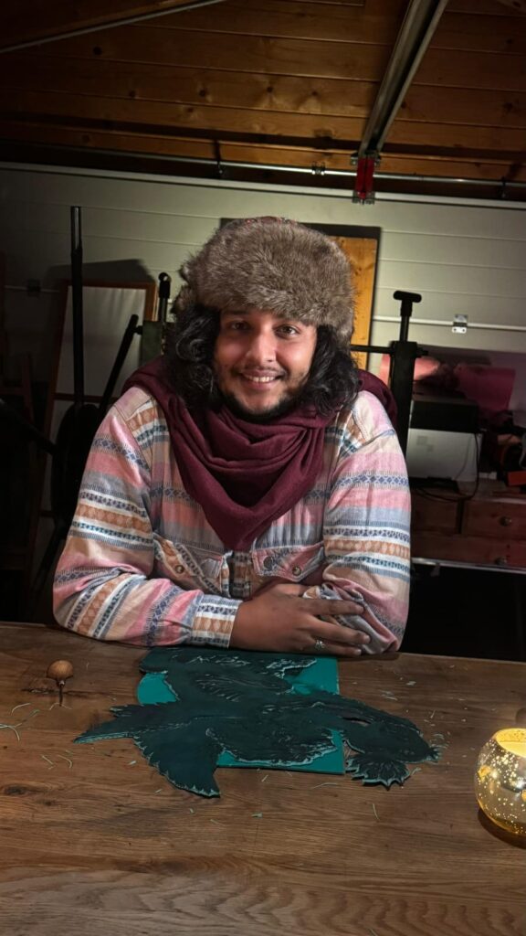 Since 2015, Fabián García has been based in Vienna, where he continues to develop his artistic practice and contribute actively to the local and international art scene. His work has been exhibited both nationally and internationally, including the presentation of Matrone at the Día de Muertos exhibition at Galerie Lichtraum in 2024. In parallel with his studio practice, he is deeply committed to education, offering engraving courses, traditional artisanal workshops, and masterclasses in xylography, including advanced training under Prof. Pedro Peralta.