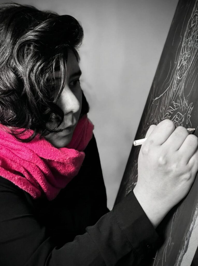 Andretta’s artistic path unfolds through a multidisciplinary education grounded in textile practice, design, and pedagogy. She completed her training in Fashion, Design, and Textiles at HBLA Herbststrasse in Vienna, where she developed the ability to translate imagination into form. She subsequently earned a Bachelor’s degree in Fashion and Design Education, discovering the transformative potential of teaching as a creative and empowering act. Currently, she is further expanding her artistic language through studies in Art Education and Visual Arts at the Academy of Fine Arts Vienna.